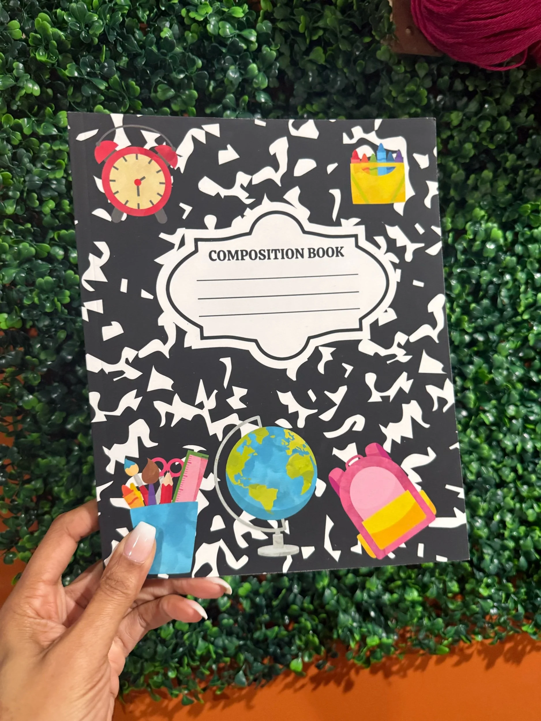 Shop › Back to School Composition Book Image 1 of 3 Image 2 of 3 Image 3 of 3 Back to School Composition Book Sale Price: $8.00 Original Price: $10.00 Add To Cart Added!