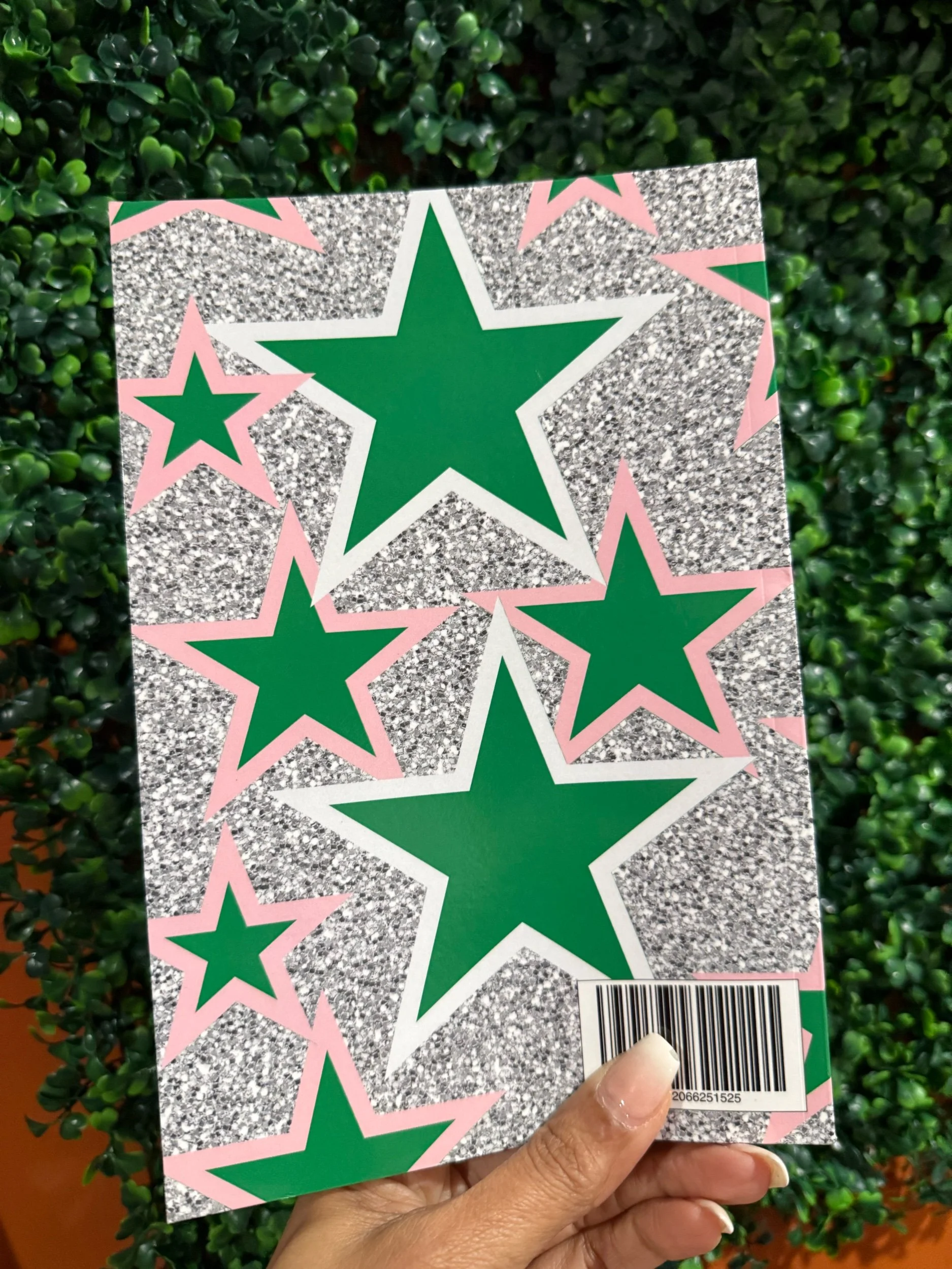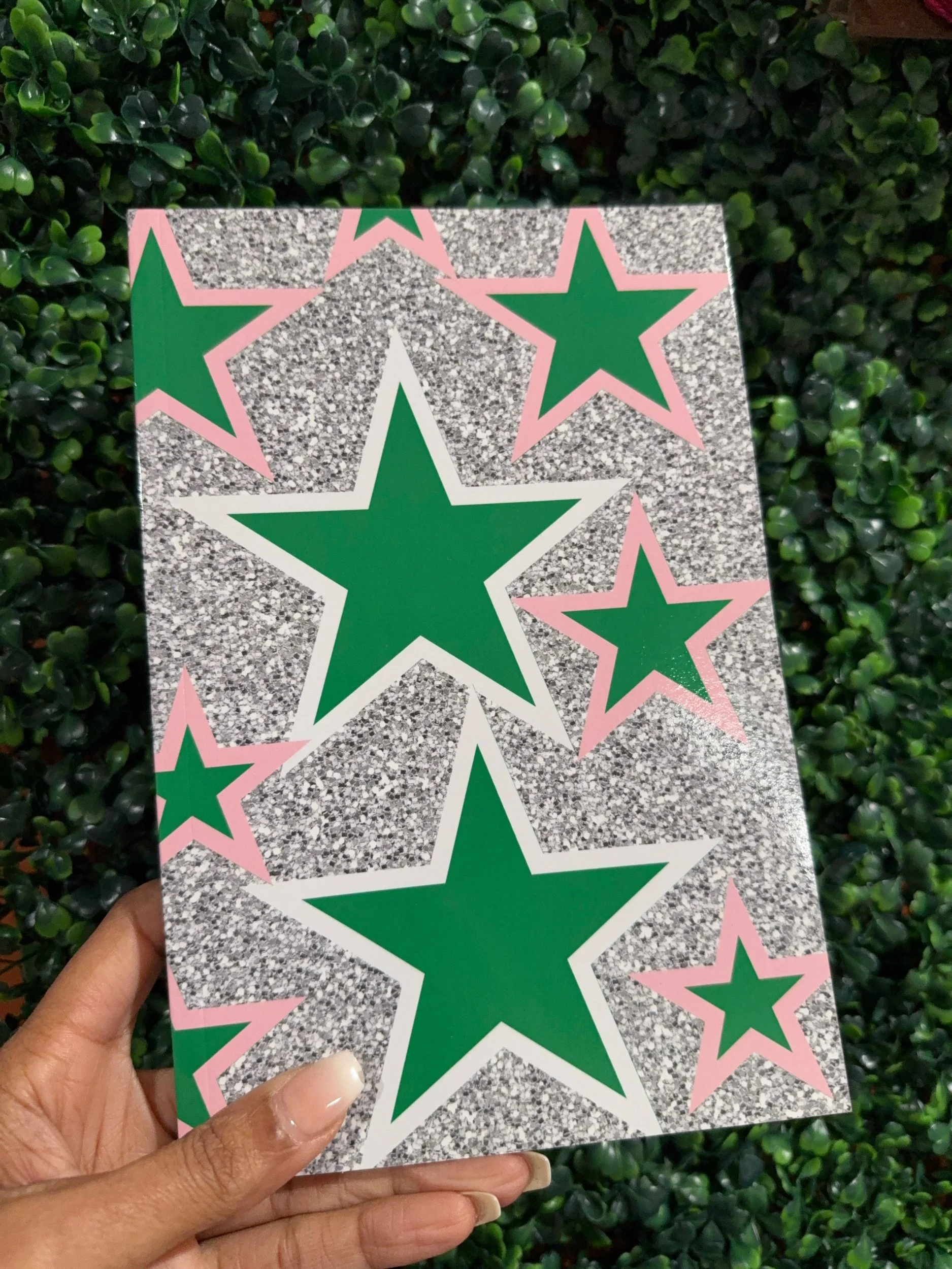 Shop › Silver Star in Pink and Green Journal Image 1 of 2 Image 2 of 2 Silver Star in Pink and Green Journal Sale Price: $15.00 Original Price: $18.00 Add To Cart Added!