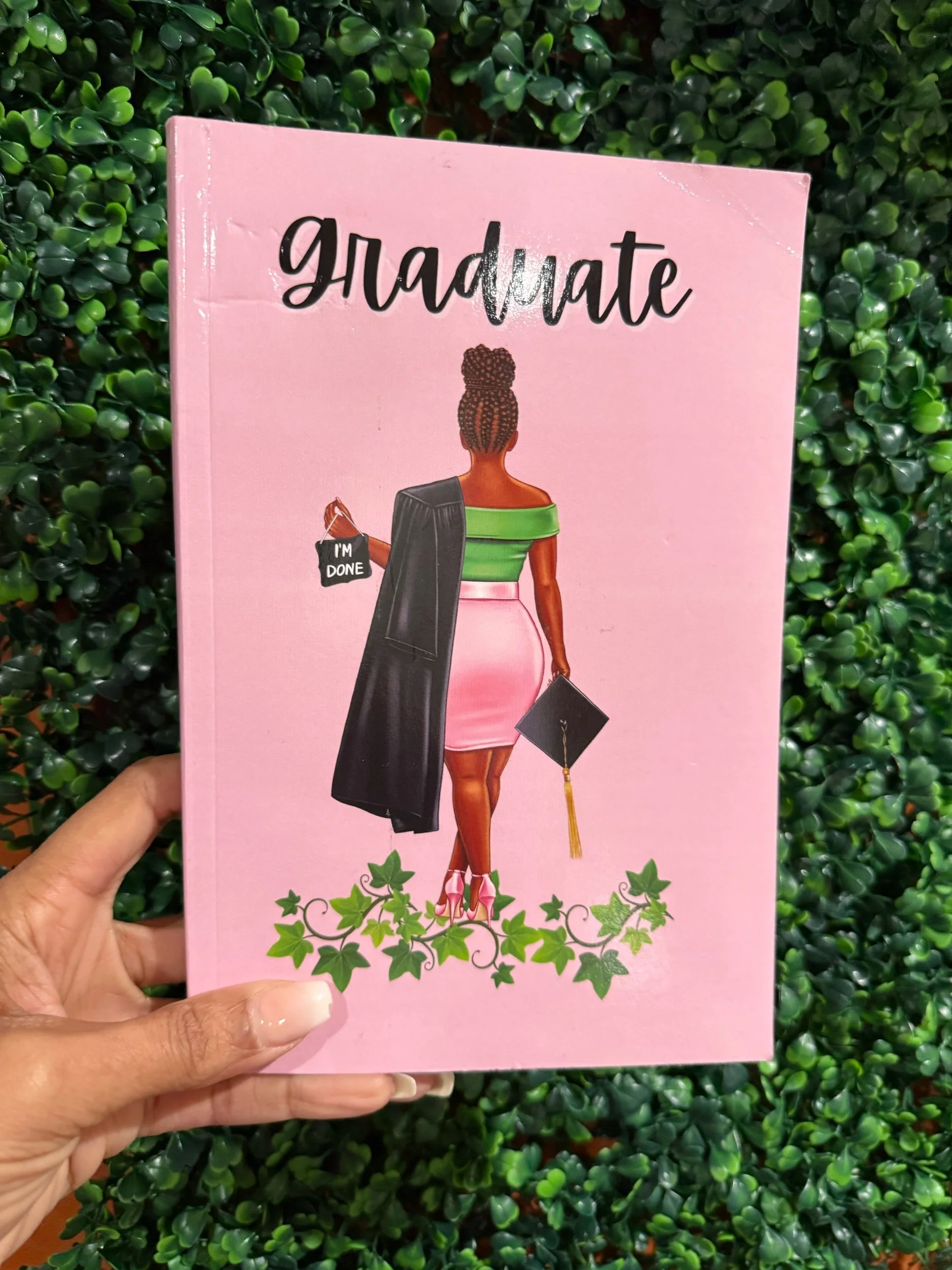 Shop › Graduate in Pink and Green Journal Image 1 of 2 Image 2 of 2 Graduate in Pink and Green Journal Sale Price: $15.00 Original Price: $18.00 Add To Cart Added!