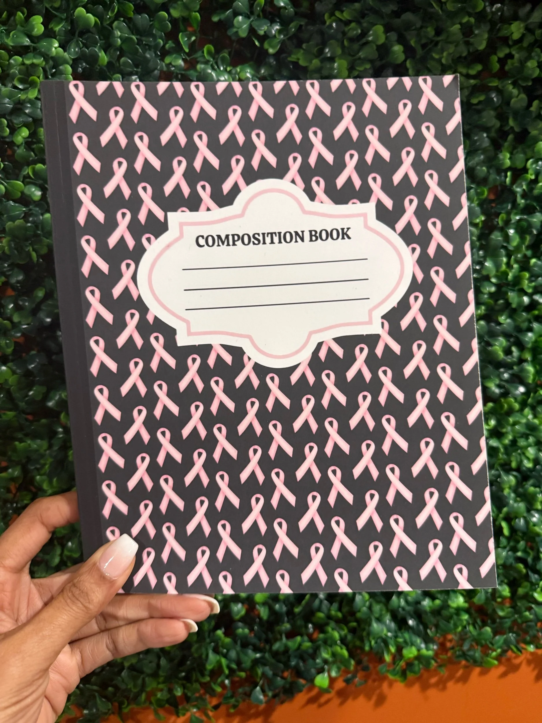 Shop › Black with Pink Ribbon for Breast Cancer Awareness Composition Book Image 1 of 3 Image 2 of 3 Image 3 of 3 Black with Pink Ribbon for Breast Cancer Awareness Composition Book Sale Price: $8.00 Original Price: $10.00 Add To Cart Added!